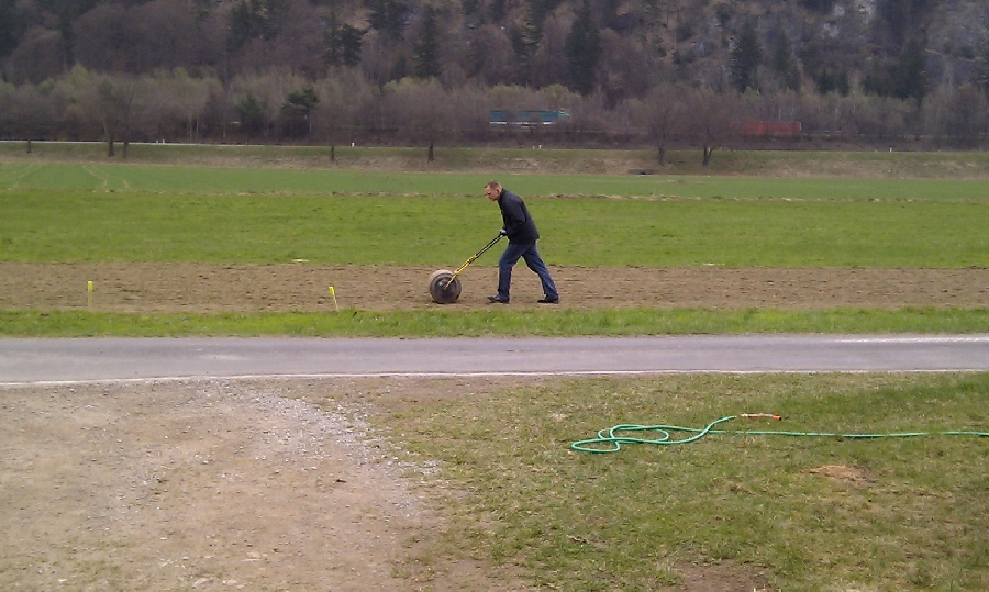 Mit spezieller Saat, Streuwagen und Walze ging es dann zu Werke
